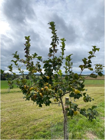 Die angelegte Streuobstwiese in Bartholomä entwickelt sich von Jahr zu Jahr weiter und zeigt in diesem Jahr erfreuliche Fortschritte: Trotz ihres jungen Alters tragen die Bäume bereits zahlreiche leckere Äpfel und Birnen.